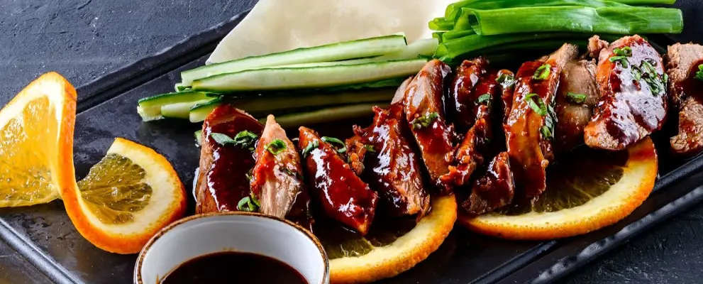 - Serve immediately with the pancakes, spring onions and a bowl of hoisin sauce.