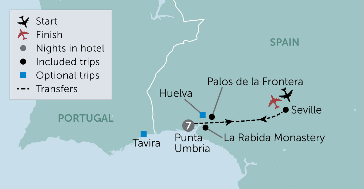 Andalucia was a hugely significant location for Christopher Columbus, and the aptly named Columbus Trail pinpoints the main sites connected with this great explorer. On an included tour today, we will visit La Rabida Monastery, where Columbus stayed whilst waiting for financial backing from the Catholic monarchs for his voyage to the New World in 1492. We'll also head to the Harbour of the Caravels, to see full-size replicas of the three vessels that made this historic journey, the Santa Maria, Pinta and Niña.