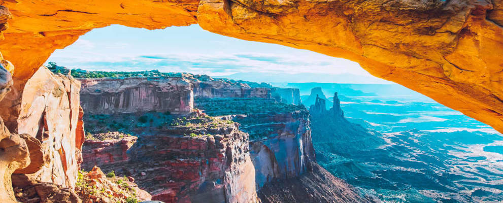 Today we make our way to Canyonlands National Park, an incredible rugged landscape of canyons carved by the Colorado River. The Islands in the Sky district of the park offers expansive views from many overlooks of the canyon wilderness below. Later we'll arrive in Moab for an overnight stay where you have the opportunity to take an optional sunset jet boat ride on the Colorado River. This scenic trip gives you the chance to view the red rock cliffs from the water and is followed by a cowboy style dinner.
